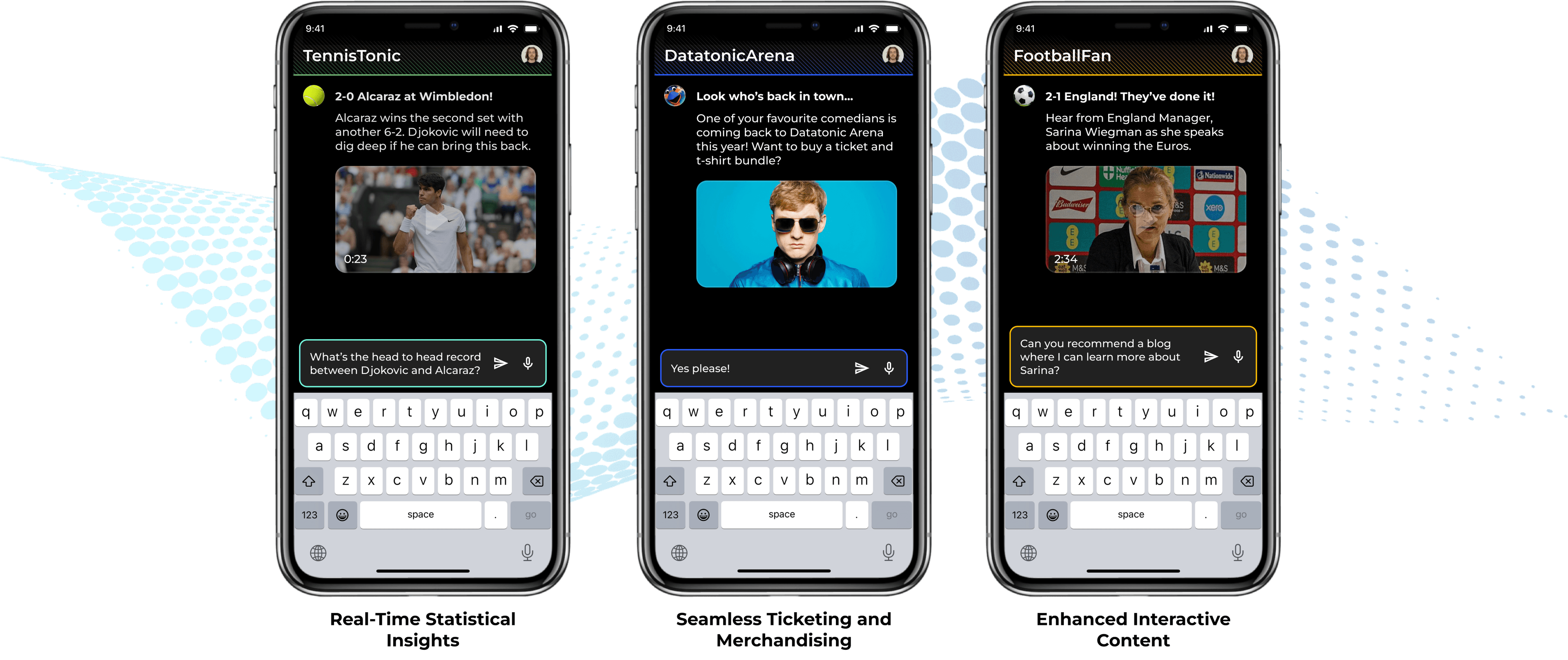 24/7 Fan Engagement: Always-on conversational interface providing instant responses to fan queries about teams, players, stats, and more.